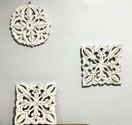 Rustic Carved 9” Wood Wall Decorations White, Floral Themed, MDF New Set of 3$21Oakland Park, FL