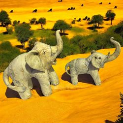 Vintage Set of 2 Crushed Oyster Shell Lucky Elephants 6.5” & 4.5” tall. NM$50Oakland Park, FL