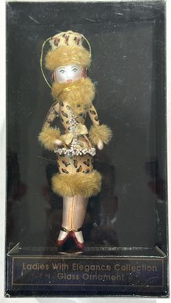 "LADIES WITH ELEGANCE" Hand blown Glass Ornament Fox Stole Leopard Dress & Hat NIB$28Oakland Park, FL