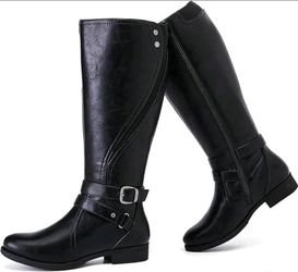 Black Knee High Boots, Round Toe Low Heel Riding Combat with Side Zipper, 8.5$25Oakland Park, FL