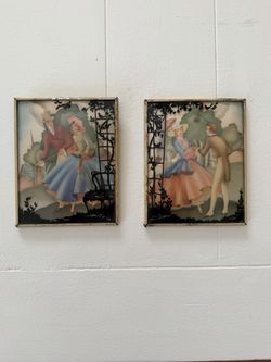 glass silhouettes Vintage reverse painted convex glass silhouettes$20Lathrop, CA