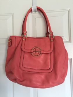 Tory Burch Amanda Coral Pebbled Leather Handbag Satchel Crossbody Bag$120Houston, TX