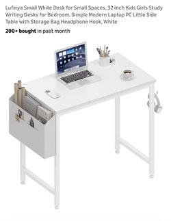 Lufeiya Small White Desk for Small Spaces, 32 Inch Kids Girls Study Writing Desks for Bedroom, Simple Modern Laptop PC Little Side Table with Storage $35Romeoville, IL