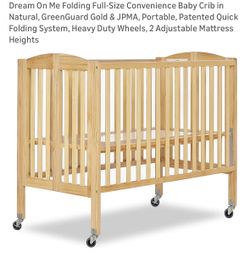 Dream On Me Folding Full-Size Convenience Baby Crib in Natural, GreenGuard Gold & JPMA, Portable, Patented Quick Folding System, Heavy Duty Wheels, 2 $230Romeoville, IL