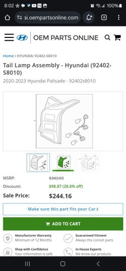 2020-2023 Hyundai Palisade Tail Lamp Assembly - Hyundai (92402-S8010)$150Atlanta, GA
