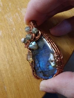 Labradorite Blue 💙 Copper Wire Wrapped Adorned With lab Chips$35Marysville, WA