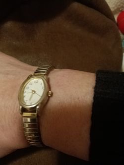 Retro Stretch Gold Metal Band Oval Analog Watch Nice! 6-1/4 Inside Working New Battery $22Marysville, WA