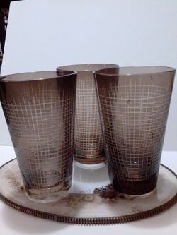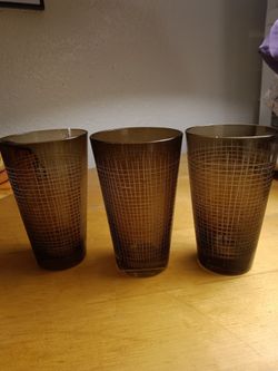 Vintage Retro Bar brown Glasses, Etched On Outside Of Glasses, Criss Cross Design, Sqaures $18Marysville, WA