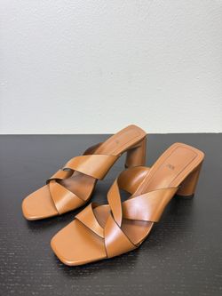 Tan Cross Strap Block Heel Sandals – Square Toe, Elegant & Modern$15Rowland Heights, CA