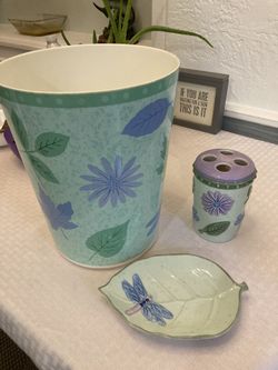Dragonfly Bathroom Set - Shower Curtain, Trash Can, Toothbrush Holder And Soap Dish$20Holly Hill, FL
