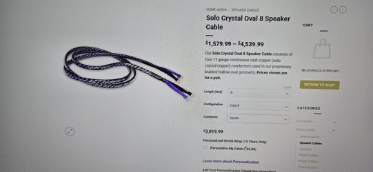Analysis Plus SOLO CRYSTAL OVAL 8 Audiophile Speaker Cables. 8' Pair A+$1,299Seattle, WA