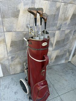 Vtg Leather Golf Bag / Golf Clubs Set$150Denair, CA