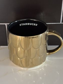STARBUCKS Gold Holiday Mug Ceramic Mermaid Scales Scalloped 14 fl oz$15Vlg Wellingtn, FL