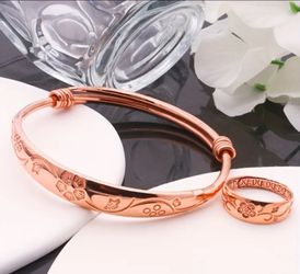 Matching copper jewelry set that includes a floral design bracelet bang$55Palatine, IL