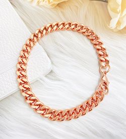 Pure Copper Cuban Link Bracelet 8mm Solid Chain 19.5cm or 21cm Mens Womens