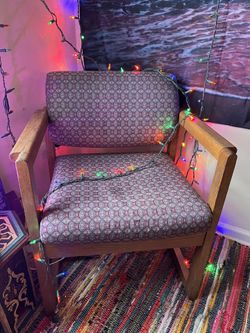 Mid Century Modern Wooden Chair With Patterned Upholstery $30Clemson, SC
