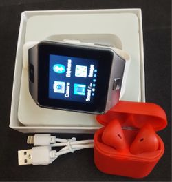 D-Series White Smart Watch +5.0 Red Bluetooth Earbuds $54Mckinney, TX