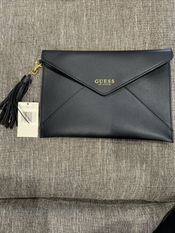 GUESS Clutch- Black Monogram Envelope Flap Trifold Wallet with Tassel Charger$15Fontana, CA