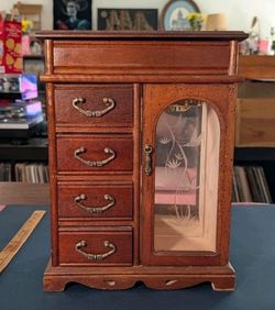 Vintage 1970s Brown Tall Wood Jewelry Armoire Wardrobe Cabinet 6 Compartments $34Las Vegas, NV
