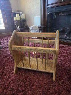 vintage wooden magazine rack used for organizing newspapers, journals, and books. crafted from Oak solid wood,$45Riverside, CA