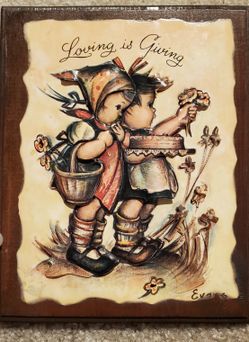 Vintage 70's Hummel Style Wall Decor "Little Boy And Girl Plaque Signed by Artist Evans$9George, WA