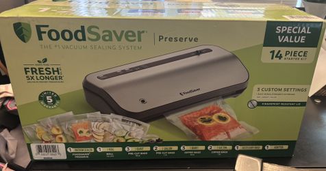 FoodSaver Preserve Vacuum Sealer, 14-Piece Starter Kit, Vacuum Seal Roll & Bags$99Fresno, CA
