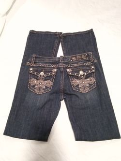L.A. Idol Size 7 Mid Rise Boot Cut Bling Rhinestone Pattern Jeans$30Belfair, WA