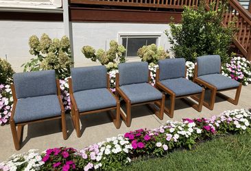 Set of 5 Mid-Century Modern Oak Frame Dining / Accent Chairs – Blue Upholstery, Vintage Style$300Buford, GA