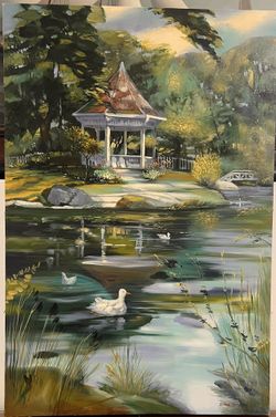 “ Lake of Gazebo”Original Oil Painting, 24”x36” .French Country with signature. $200Baltimore, MD
