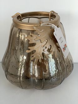 Pier 1 Pumpkin Hurricane Candle Holder Gold Amber$12Corona, CA