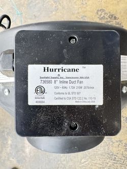 Hurricane® Commercial Grade Inline Fan 8" 745 CFM - HGC736580$65Tujunga, CA