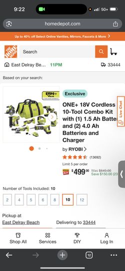 Ryobi 10 Piece Power Tool Set$480Hillsboro Beach, FL