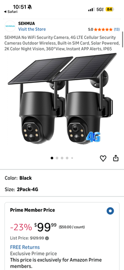 Sehmua pan tilt security camera solar powered$80Grand Terrace, CA