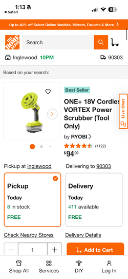 Ryobi one+ power scrubber$80Grand Terrace, CA
