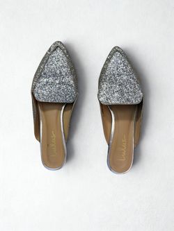 Lulus Womens Joelle Mule Flat Shoes Silver Slip On Sequin Pointed Toe Size 9$5Solvay, NY