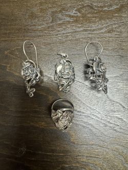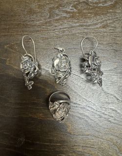 Sterling 925 pendant, earrings and ring 7 Size. 28 Grams $250West Hollywood, CA