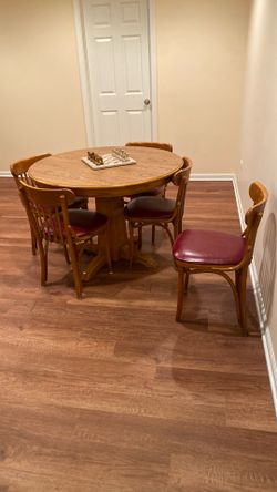 Oak Solid Wood Round Table With 5 Chair Leather Excellent Condition$100Plainfield, IL