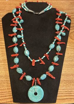 Gorgeous turquoise silver necklace red coral vintage to now lot of stones$20Covington, WA