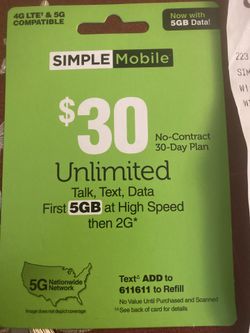 Simple Mobile $30 No-contract 30 Day Olan$30San Francisco, CA
