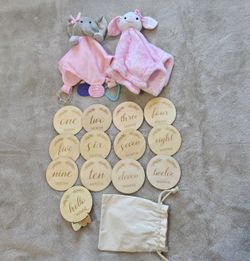 Pink Snuggle Blankies And Wooden Milestone Disc Bundle$10St. Cloud, FL