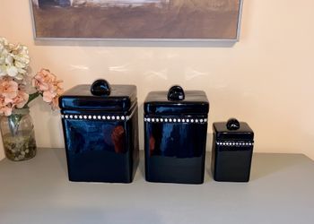 Vintage Ceramic Godinger Black Square Canister Set $65Franklin, NC