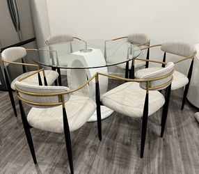 Round Glass Top Pedestal Dining Table With Six Chairs $1,250Los Angeles, CA