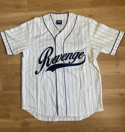 Revenge Pinstripe Baseball Jersey (White)$160Los Angeles, CA