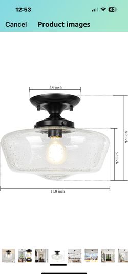 Schoolhouse Style Light Fixture, 12" Black Semi Flush Mount Ceiling Light with Seeded Glass Globe, Close to Ceiling Lights for Kitchen, Hallway, Entry$30Hemet, CA