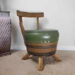 Vintage Whiskey Barrel Chair Seat Leather Cushion Wood Detail$200Everett, WA