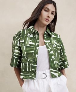Banana Republic- The Boxy Crop Short-Sleeve Shirt (Green Print) L$30Los Angeles, CA