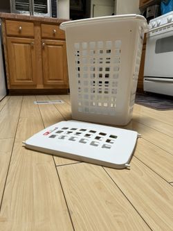 Sterilite white laundry hamper with lid$10San Diego, CA