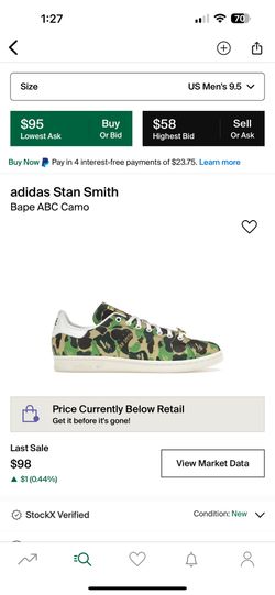 Adidas Bape Stan Smith Men’s 9.5$120Portland, OR