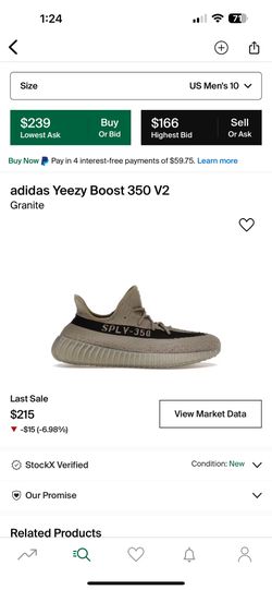 Yeezy 350 V2 Granite Men’s 10$250Portland, OR