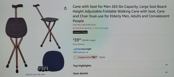 Adjustable Foldable Walking Cane With Seat$20Mesa, AZ